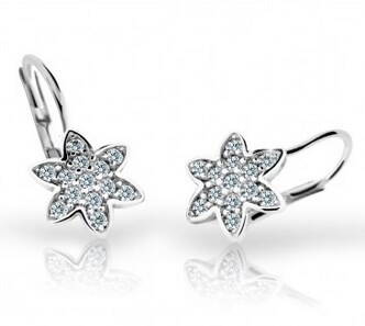 Náušnice pre deti vyrobené z bieleho zlata zdobené zirkónmi a...