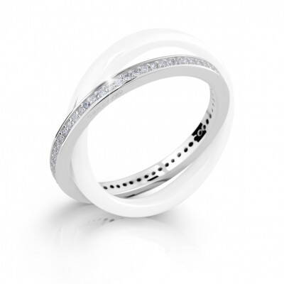 Cerafi CE 904, elegantný biely keramický prsteň v kombinácii so...