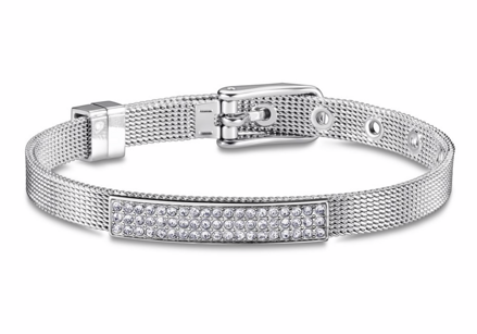 Dámsky meshový náramok z ocele v striebornej farbe so zirkónmi.