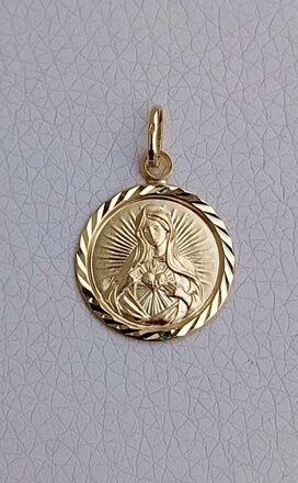 Prívesok Panny Márie vyrobený zo žltého zlata